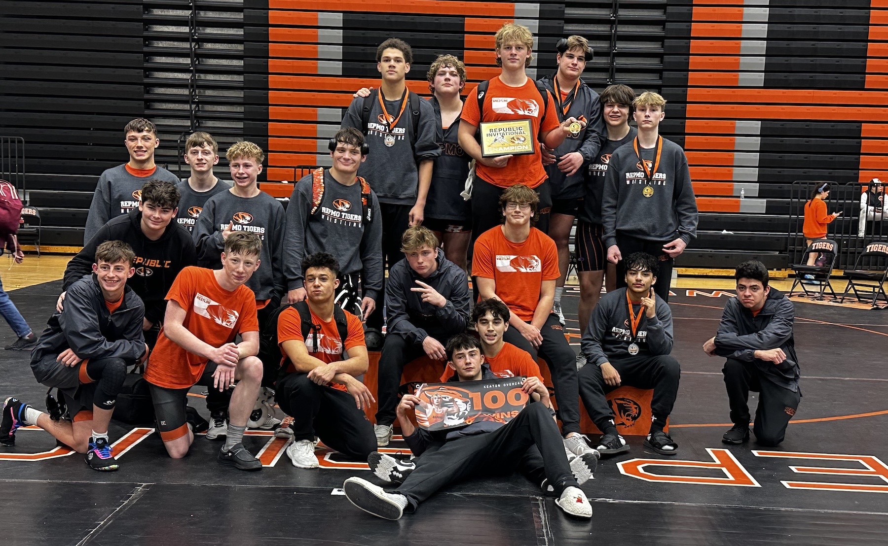Republic wrestlers racked up 269 team points to capture their home tournament Saturday. The Tigers crowned three individual champions, outdistancing second-place Lathrop by 31 points.