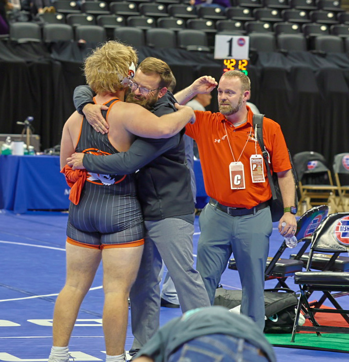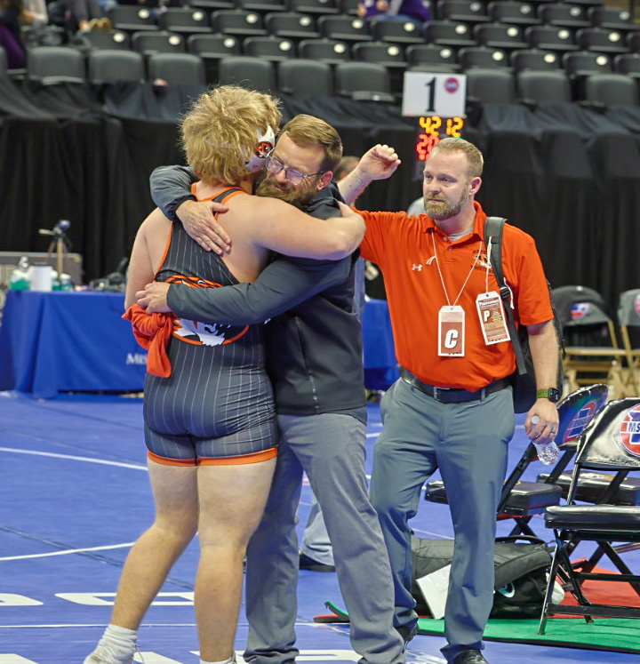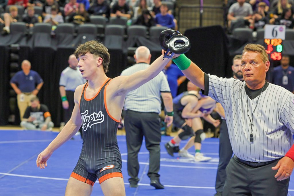 Hicks had a similar route to the medal rounds. He knocked off Kaden Updike of Oakville with a pin in the first round. In the quarterfinal match, he trailed Garo Sams of Francis Howell Central 3-0 after round one. But a takedown and nearfall put Hicks on top in the second period, and he held on for a 7-4 decision. Hicks (35-6) will wrestle Masen Bindel (20-7) in the semifinal Saturday.