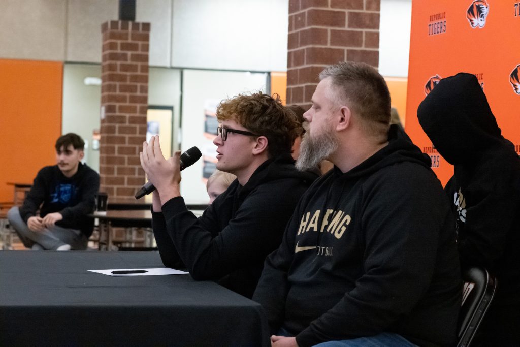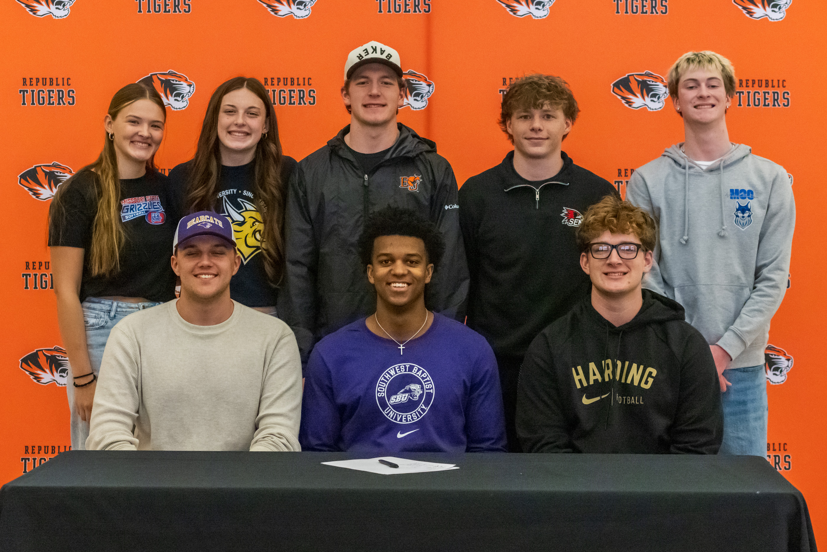 Eight Republic athletes signed to continue their athletic and academic careers at the collegiate level, representing basketball, softball, baseball, and football programs. Six will play football, one softball, one baseball, and one basketball.